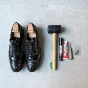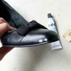 - 剥がれた部分の革の裏とヒール自体に、ボンドを爪楊枝で薄く塗る