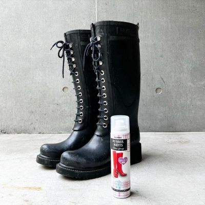 レインブーツのお手入れ ゴムの汚れを落とす コロンブス ラバーブーツシャインスプレー