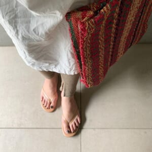 朝のパンを買いにティキーズ 履いて